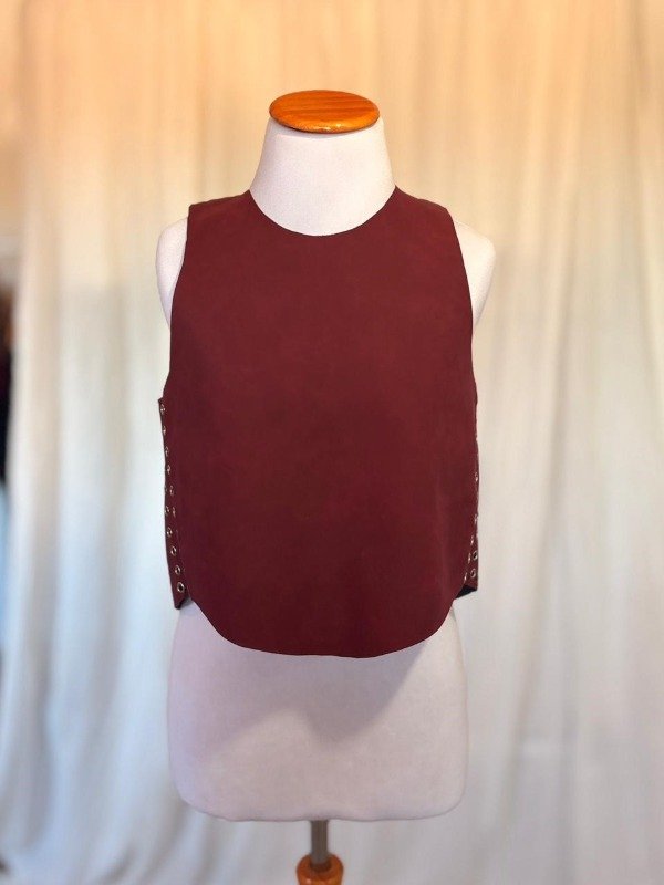 La Pechera Vesper es una pieza statement que eleva cualquier look con un aire contemporáneo y sofisticado. Confeccionada en simil cuero nobuckado (tacto suave), presenta un diseño minimalista al frente que contrasta con detalles laterales y posteriores llenos de carácter.