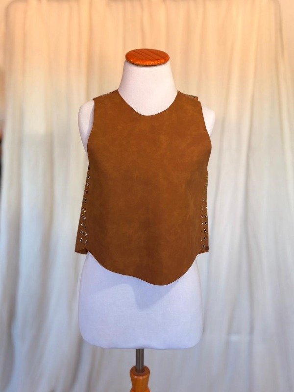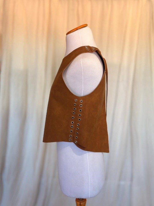 La Pechera Vesper es una pieza statement que eleva cualquier look con un aire contemporáneo y sofisticado. Confeccionada en simil cuero nobuckado (tacto suave), presenta un diseño minimalista al frente que contrasta con detalles laterales y posteriores llenos de carácter.